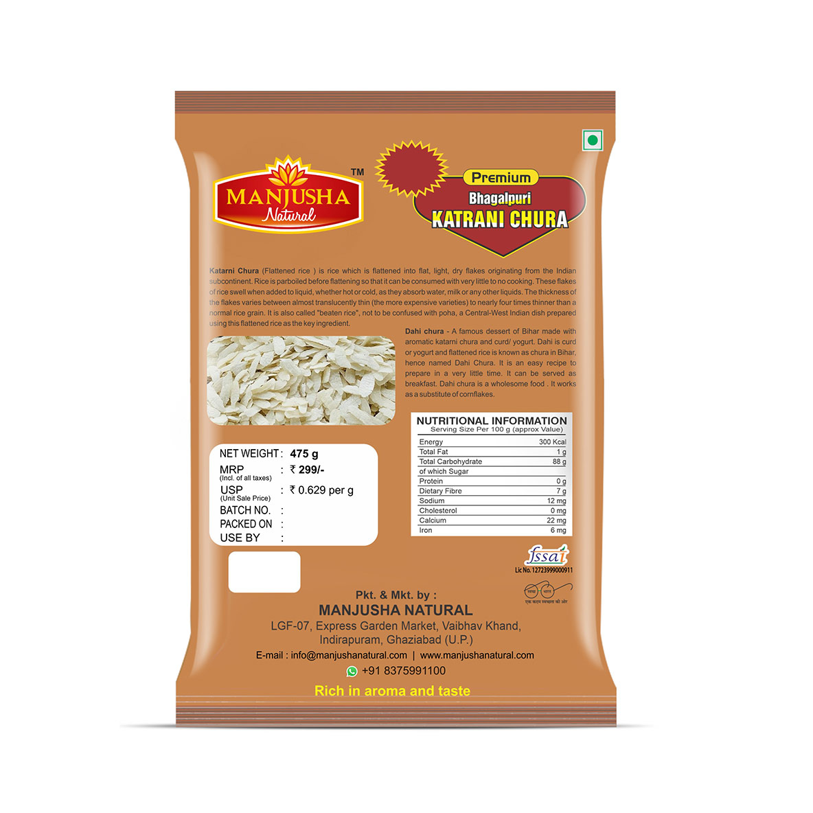As a Snack: Lightly roasted and seasoned with spices, Katarni Chura can be enjoyed as a crunchy and healthy snack.
